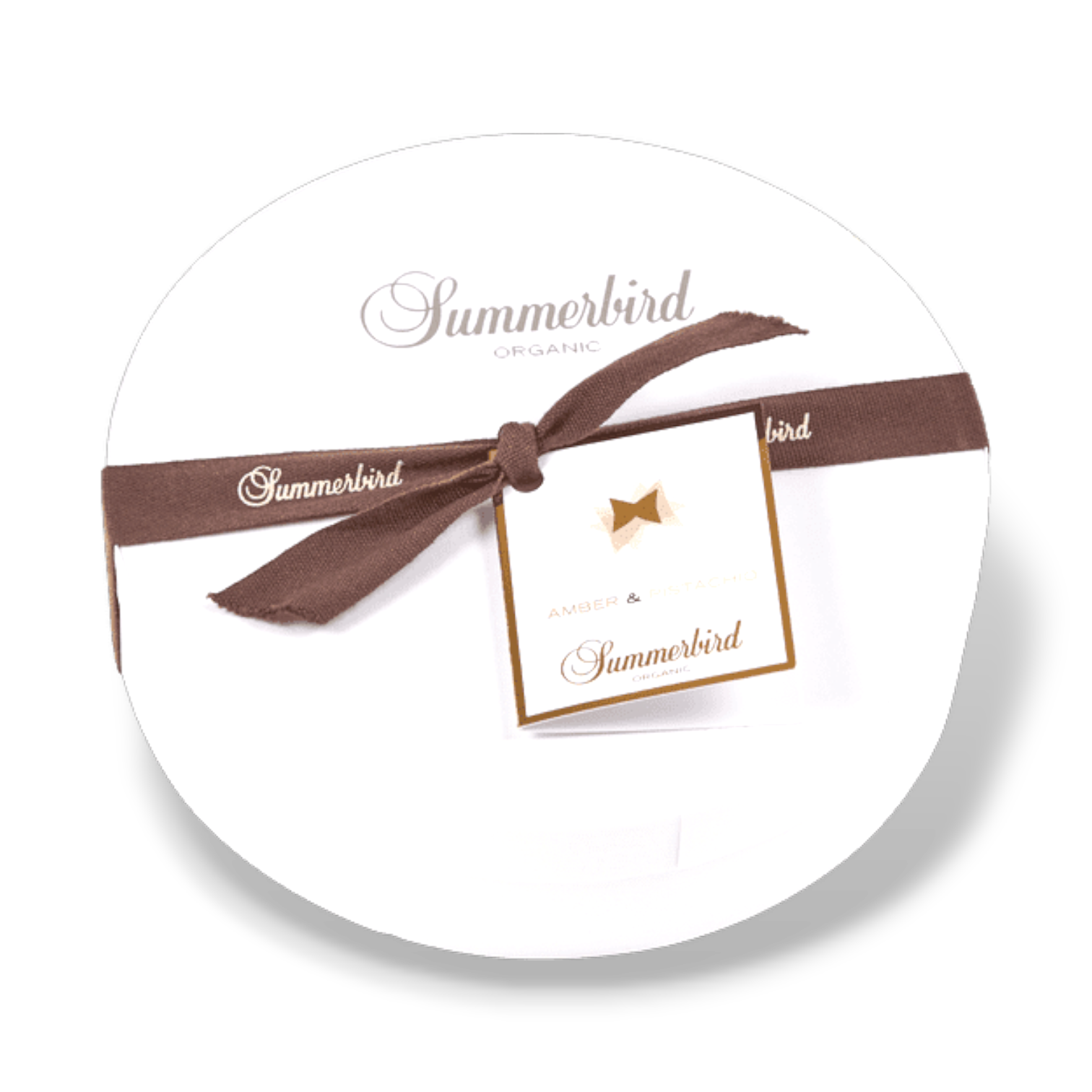 Æsken byder på hasselnøddenougat parfumeret let med orangeblomst omsluttet af den populære Amber Classic-chokolade. Pistaciepasta og mandelnougat omsluttet af den hvide chokolade: White Vanilla og slutteligt karamelganache i kombination med marcipan og Amber Classic-chokolade.