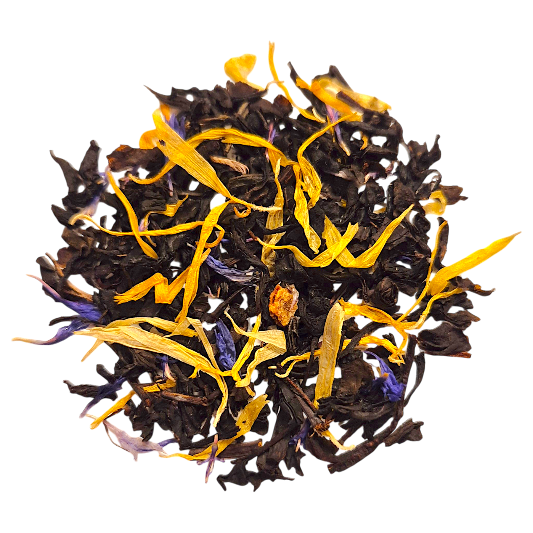Sort te*, citronskal*, blå kornblomst*, morgenfrueblade*, økologisk og naturlig aroma (*=økologisk).