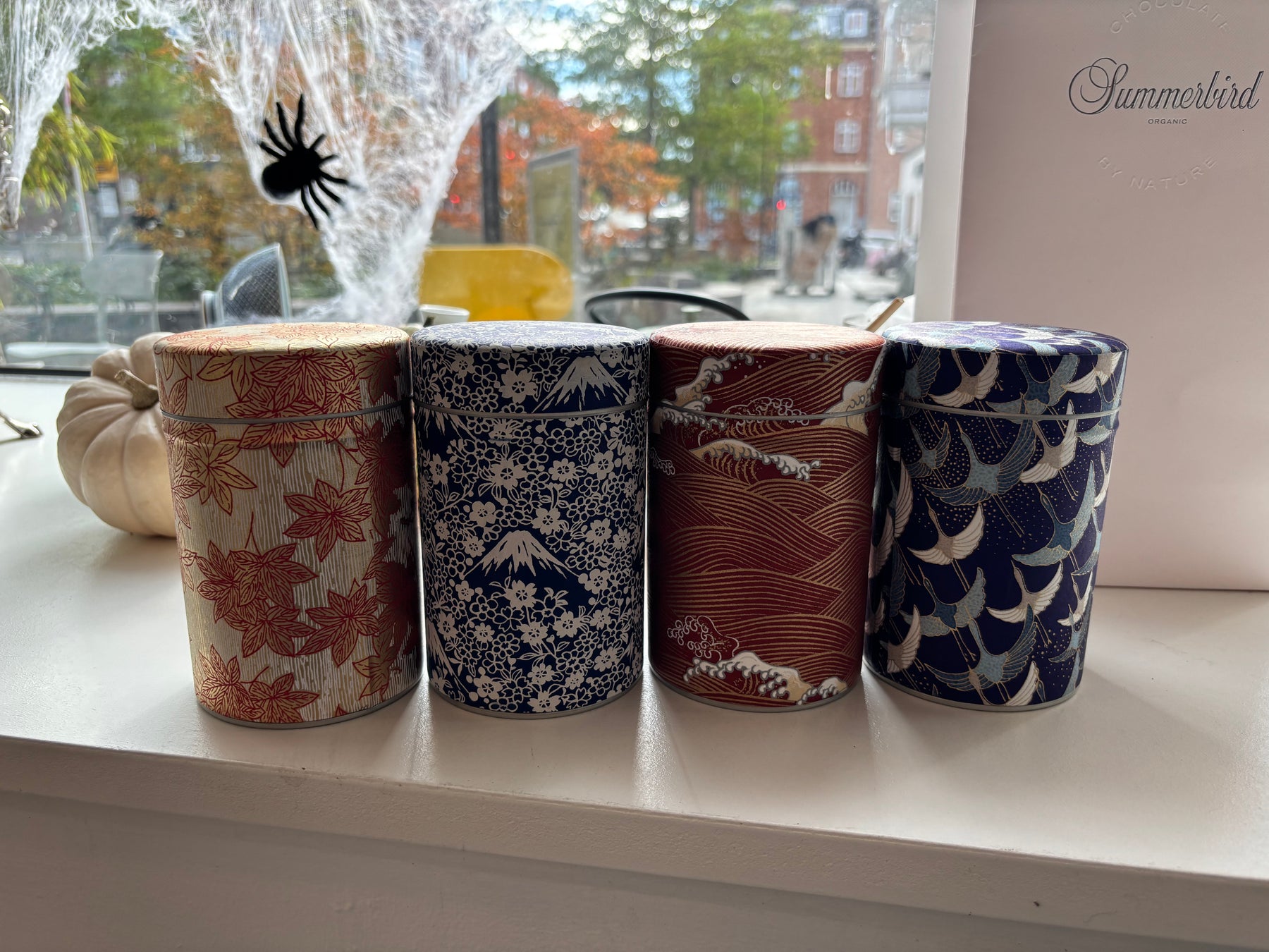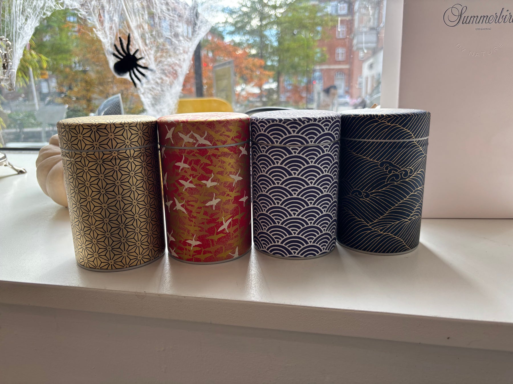 Smukke unika tedåser beklædt med japansk papir – hver dåse er håndlavet og helt unik i sit udtryk. Dåserne er ikke blot praktiske til opbevaring af te, men fungerer også som dekorative elementer i køkkenet eller på tehylden.